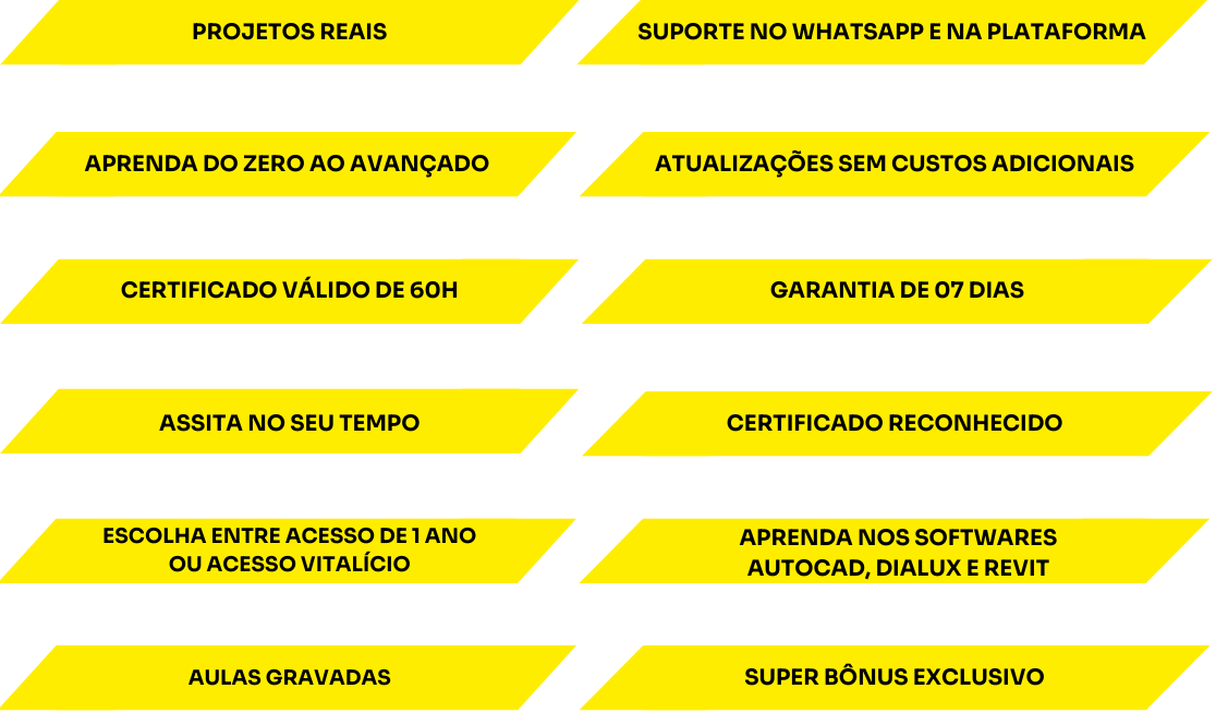 Neste treinamento online de Projetos Elétricos, com aulas gravadas, vamos pegar na sua mão, mesmo que você nunca tenha feito um Projeto Elétrico na vida. Sim, vamos te levar do zero até o nível profissional para que você você esteja preparado para qualquer exigência de qualquer empresa no Mercado da Construção Civil.